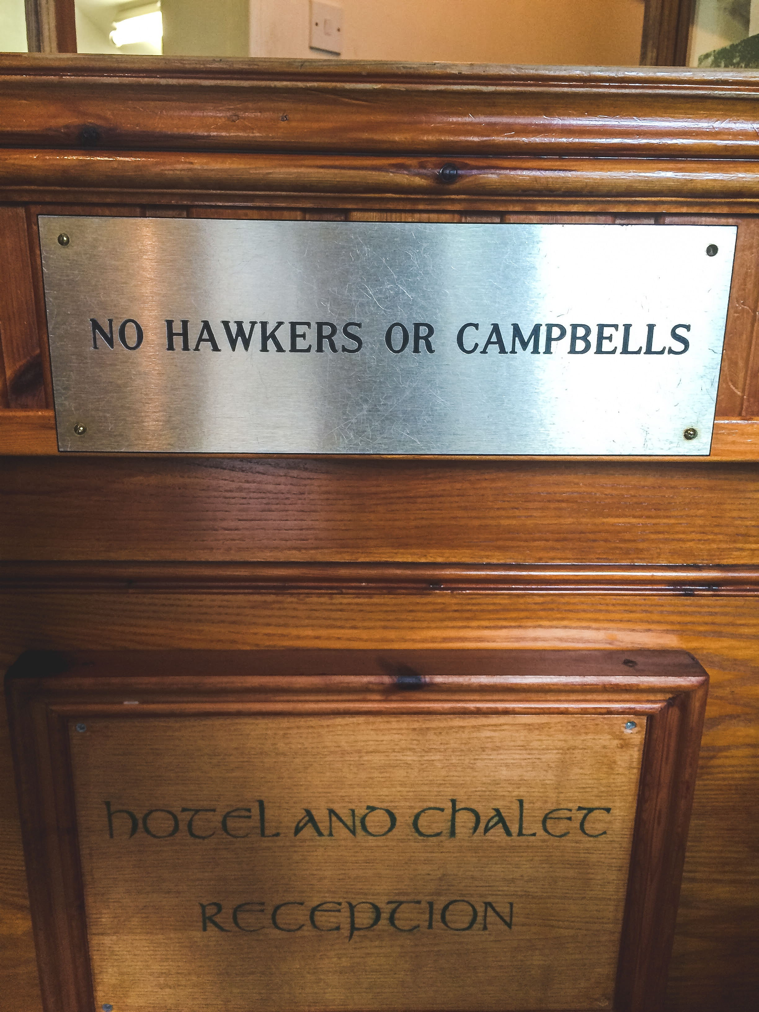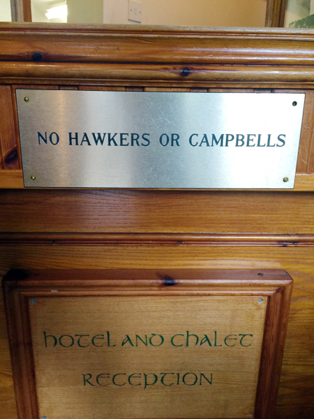 I looked that up later when we were back on the wifi, and it’s a reference to the Massacre of Glencoe, and more specifically the blood feud between the MacDonald and Campbell clans. Presumably this is just a fun placard to prompt tourists to do exactly what I did — go home and research it — since harboring resentment for over 400 years seems unlikely.