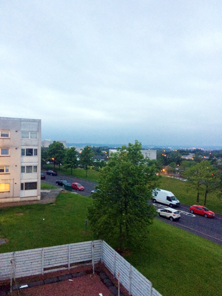 After we had our fill of Hadrian and his kingdom, we continued north to Glasgow. I played Passenger for a lot of that leg (“Feather on the Clyde” was only too fitting) and we got caught in rush hour traffic as we entered the city. We were staying in a fourth-floor flat in East Kilbride and we had a lot of trouble finding it initially, but it was worth it for the views.