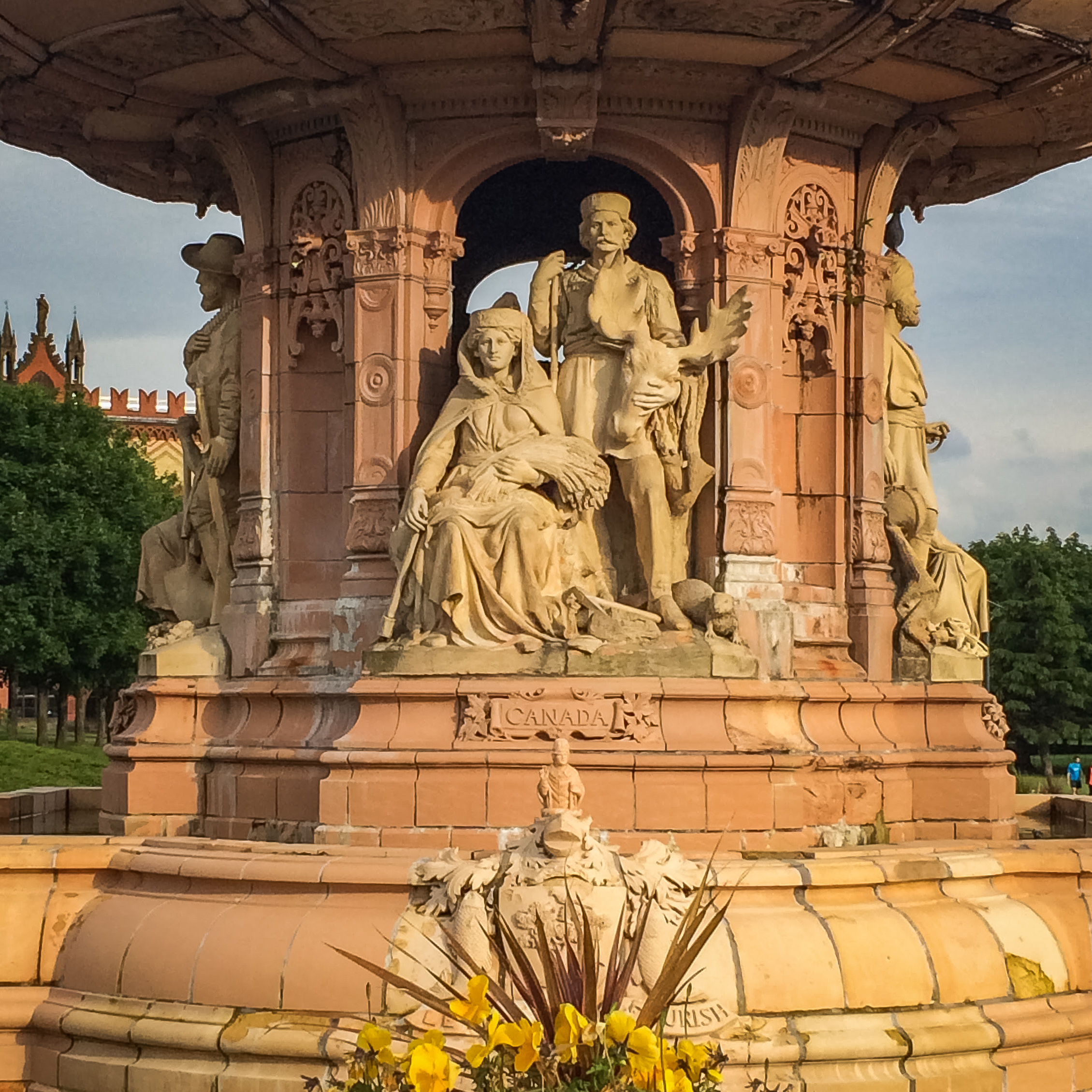 This was Mum’s favorite part of the park, the Doulton Fountain, which is in front of the People’s Palace. It depicts all of England’s realms under Queen Victoria (Canada, India, South Africa, and Australasia) in four quadrants. It’s clearly more of an homage to the Queen than the people it depicts, but it was still gorgeous.